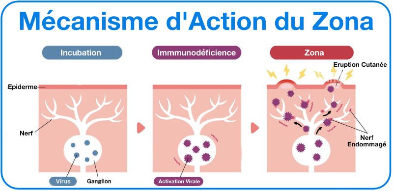 Le virus varicelle-zona (VZV), responsable du zona, tout comme le virus de l’herpès simplex (HSV), aurait besoin de l’acide aminé arginine pour se répliquer. À l’inverse, l’acide aminé lysine pourrait entrer en compétition avec l’arginine pour son absorption et son utilisation par le virus, inhibant ainsi sa capacité à se reproduire.
